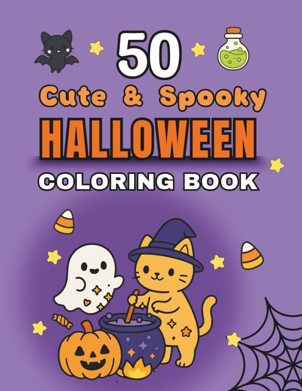 Cute & Spooky Halloween Coloring Book: 50 Adorable Kawaii Designs for Kids & Adults